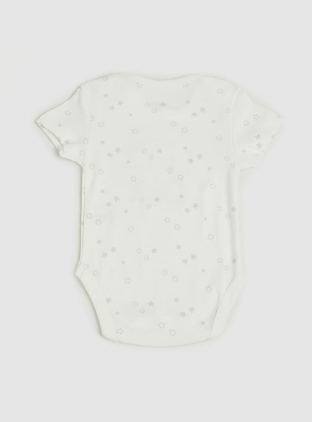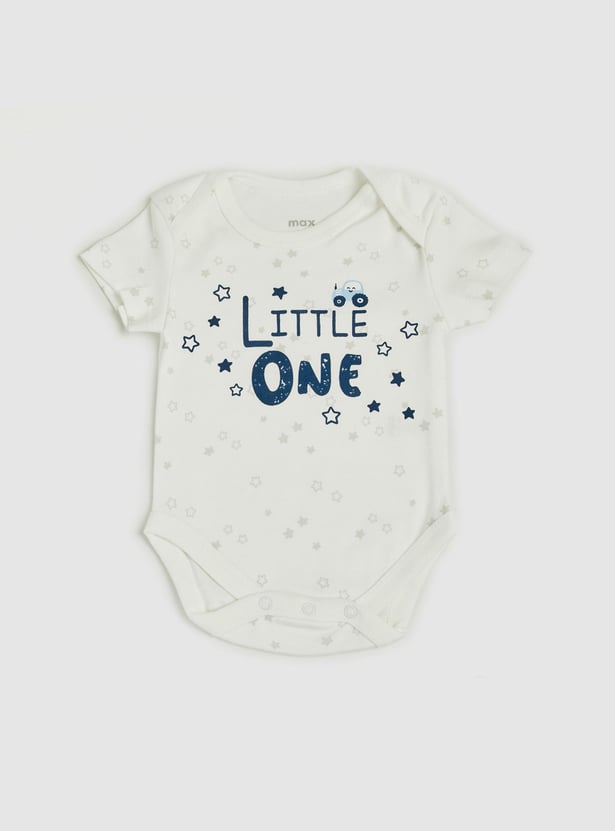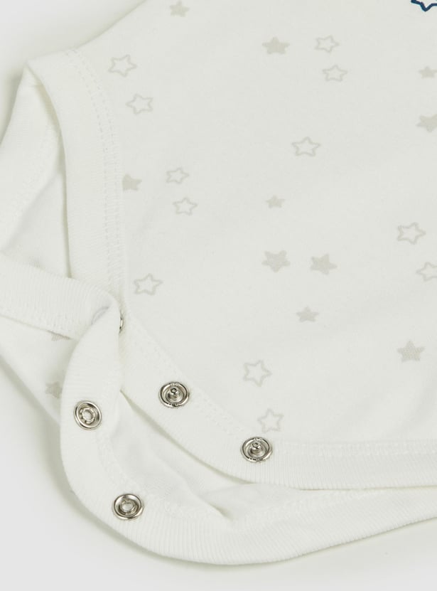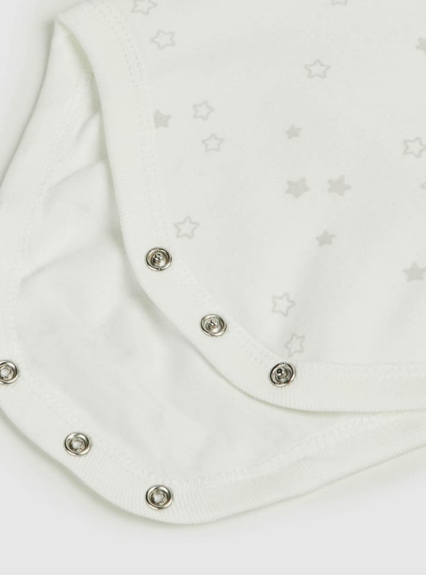 This bodysuit gift set for infants comes with a round neck and cap sleeves along with a button-down silhouette and printed design for added comfort and look.