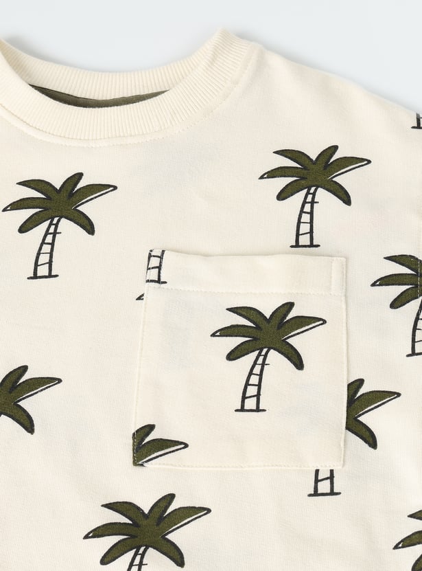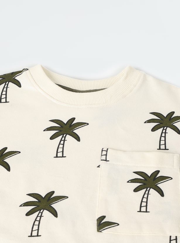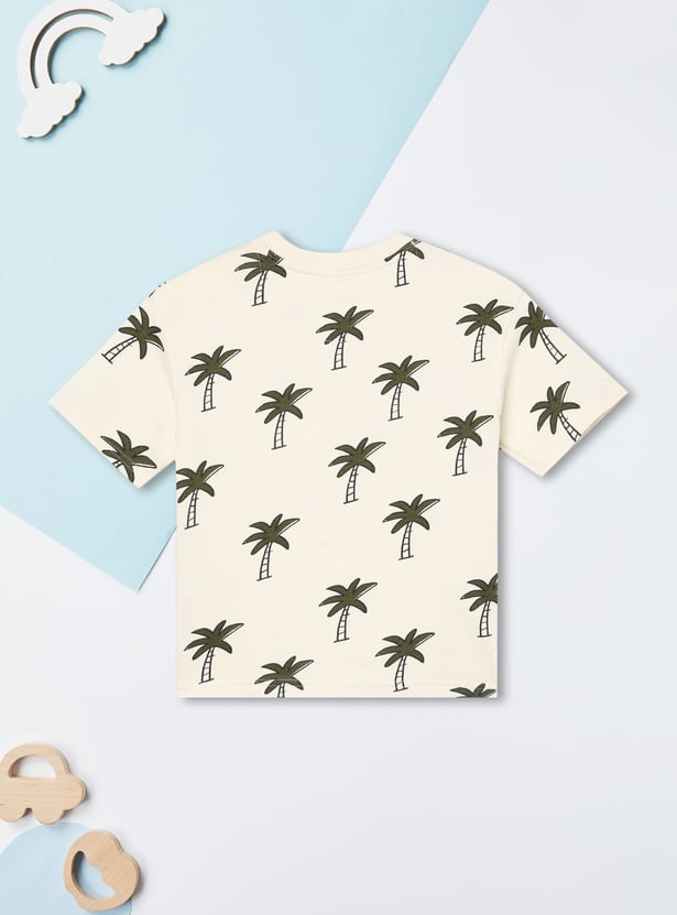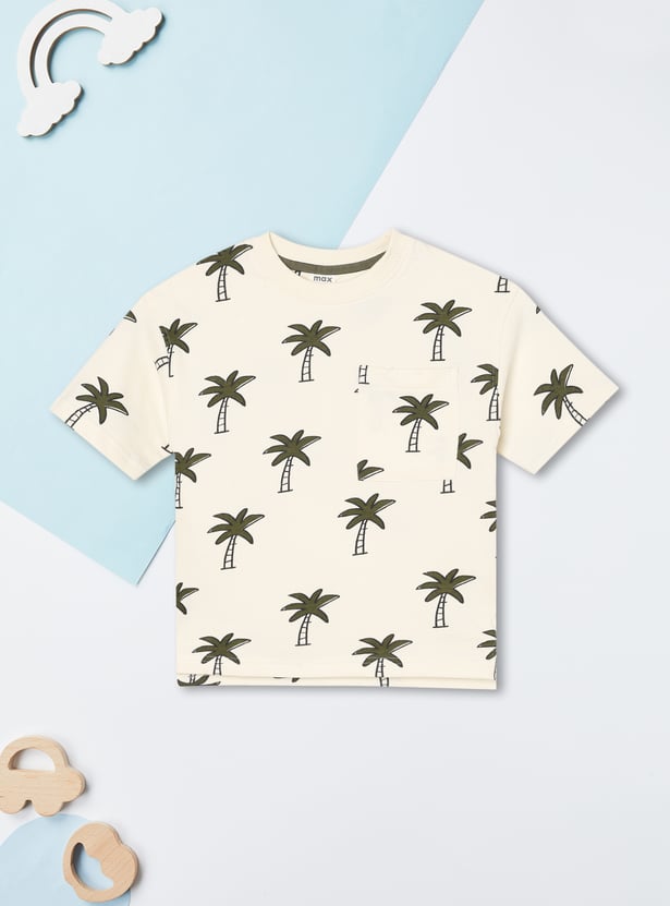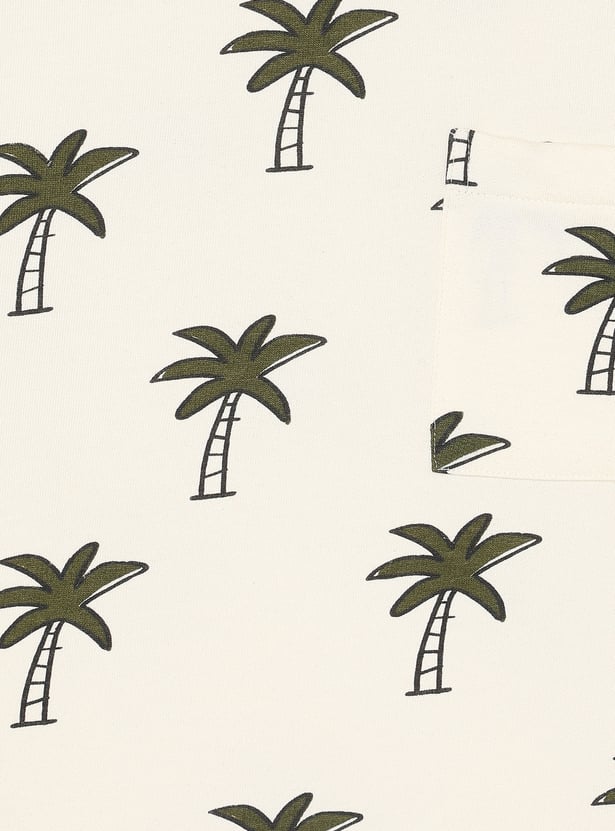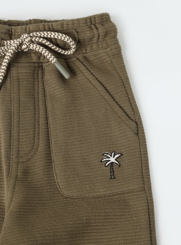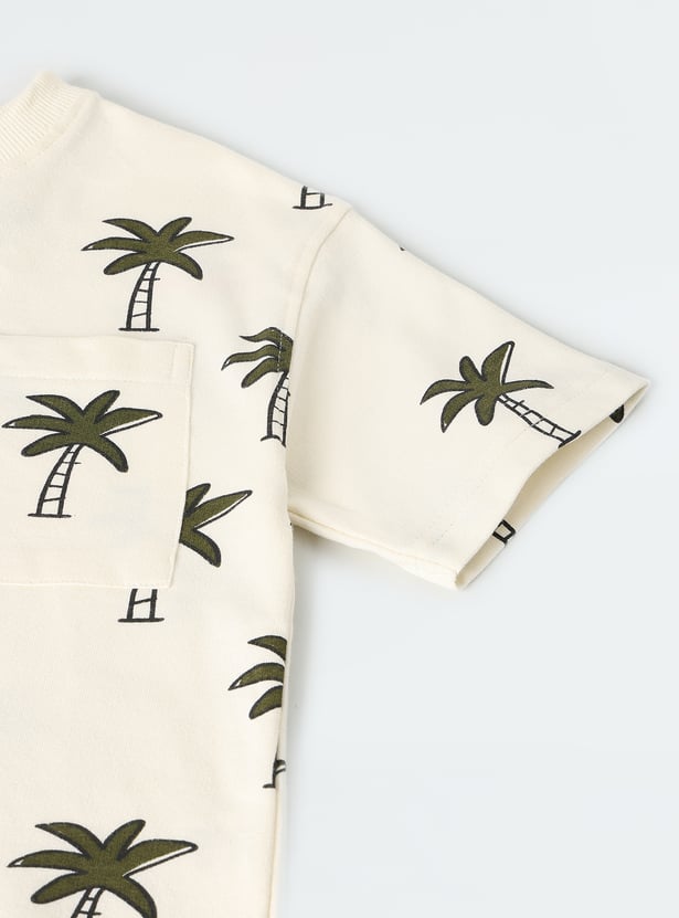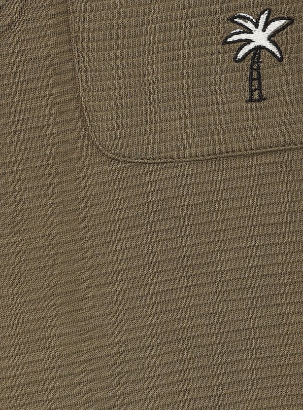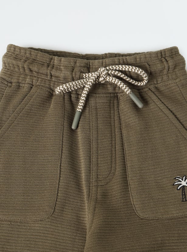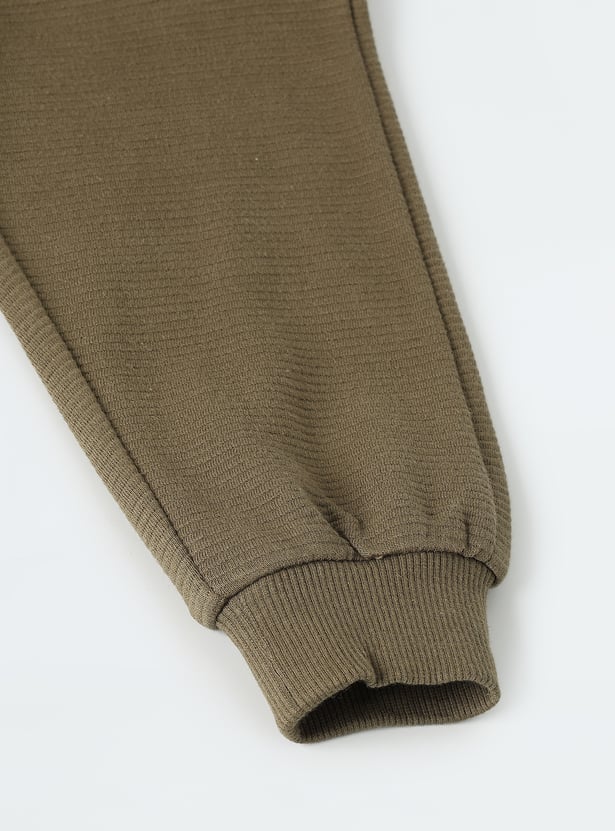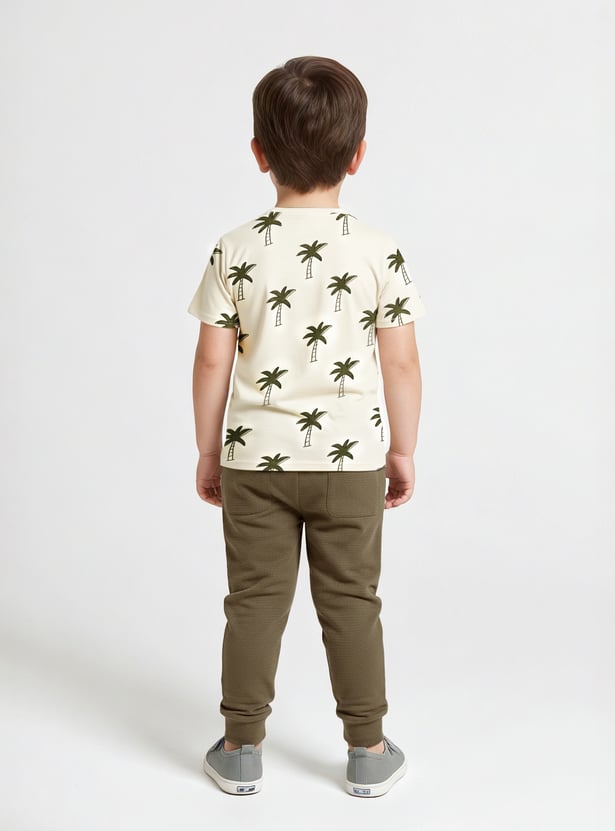 Keep it fresh and comfy with this printed T-shirt and textured jogger combo. The crew neck, half-sleeve tee pairs perfectly with joggers featuring drawstring closure and side pockets for ultimate style and ease.