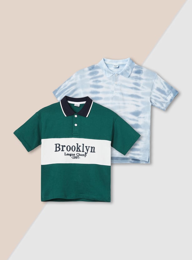 Update your casual staples with this pack of two printed polo T-shirts featuring a classic polo collar, half button closure, and comfortable half sleeves.