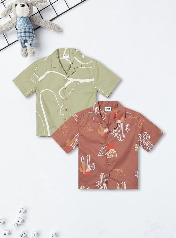 Breezy and stylish, this printed resort shirt pack of 2 is designed with a button placket, resort collar, and half sleeves for a relaxed fit.