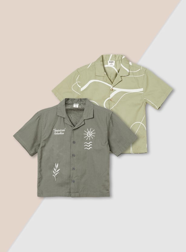 Elevate your casual wardrobe with this pack of two printed resort shirts, designed for a laid-back yet polished look. Each shirt features a cuban collar, a neat button placket, and comfortable half sleeves.