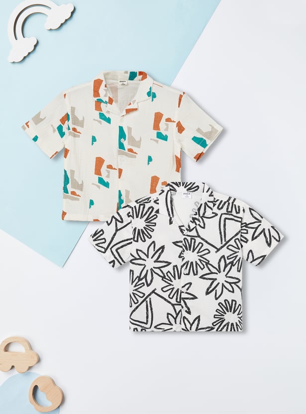 Bring the vacation vibes to his everyday style with this set of half-sleeve shirts. It has a resort collar and striking, assorted prints.