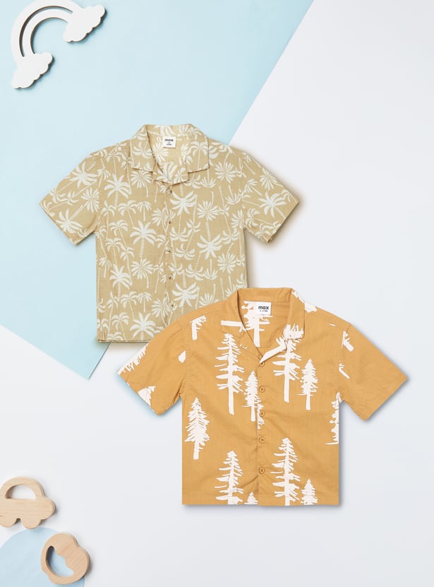 Bring easy-going style to his wardrobe with this pack of 2 printed shirts designed for relaxed everyday wear. Featuring a resort collar and half sleeves, they offer a breezy, comfortable feel. Each shirt comes in a different print, adding variety with a playful touch.