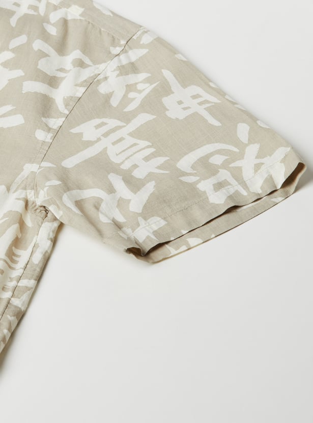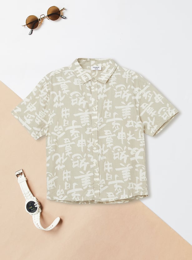 Upgrade your casual wardrobe with this printed shirt featuring a spread collar, button placket, and half sleeves for a relaxed yet polished look.