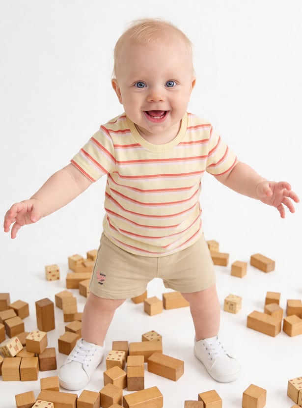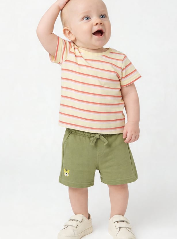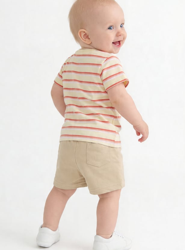Spruce up style for your little one in this preppy pair of printed shorts that feature an elasticated waistband with drawstring detail.