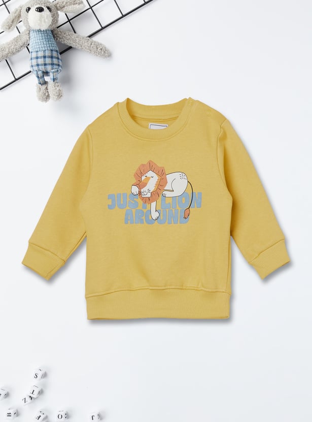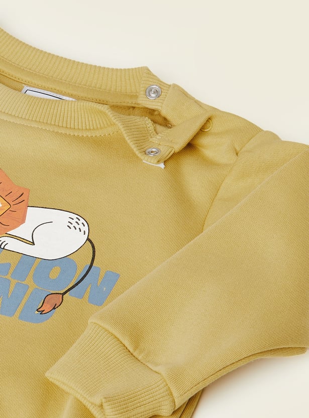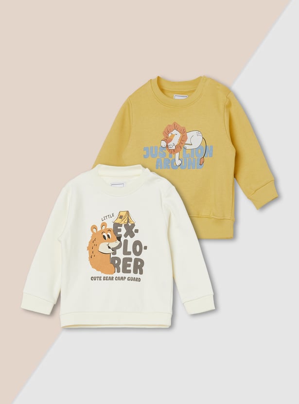 Refresh your cozy essentials with this pack of two printed sweatshirts featuring a classic crew neck, full sleeves, and a convenient snap button closure at the neck.