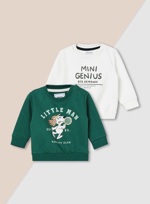 This pack brings two statement sweatshirts featuring bold prints, a clean crew neck, and full sleeves, all anchored with ribbed hems that keep the fit structured and comfortably snug.