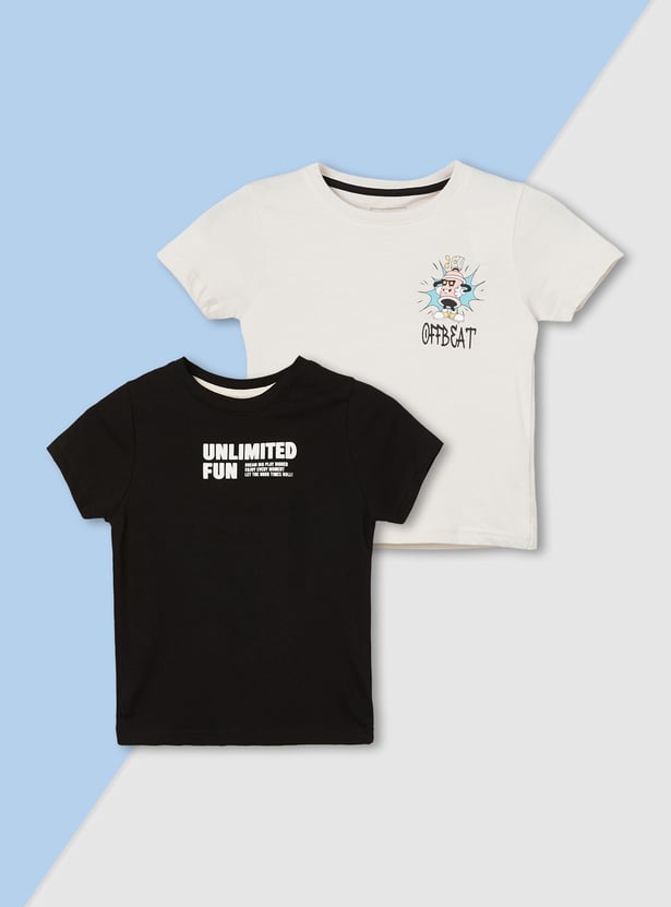 Update your basics with this pack of two printed T-shirts featuring a classic crew neck and half sleeves. Designed for a relaxed fit, these versatile tees are perfect for everyday wear.