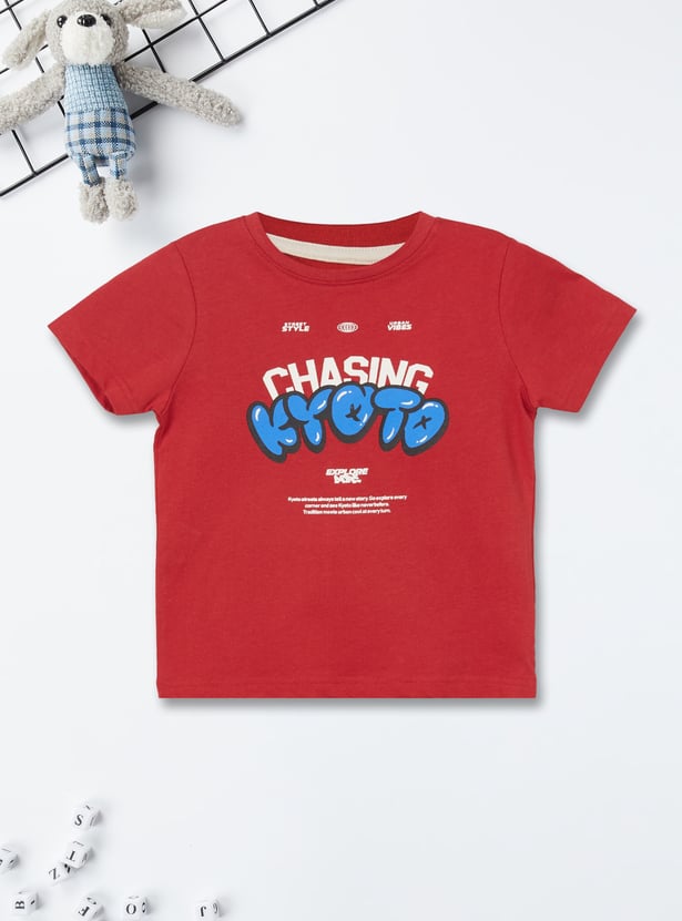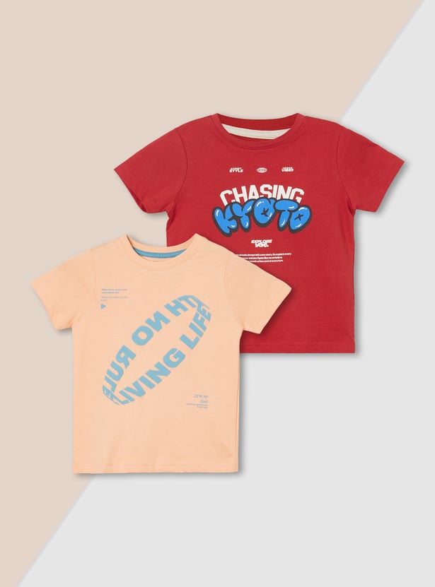 Update your basics with this pack of two printed T-shirts featuring a classic crew neck and half sleeves. Designed for a relaxed fit, these versatile tees are perfect for everyday wear.