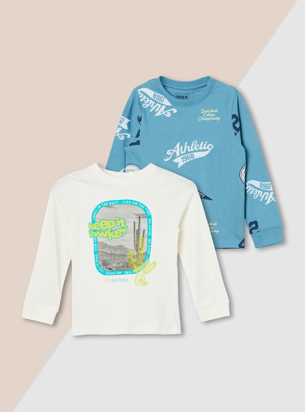 Update your basics with this pack of two printed T-shirts featuring a classic crew neck and full sleeves. Designed for a relaxed fit, these versatile tees are perfect for everyday wear.