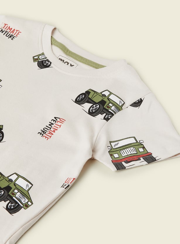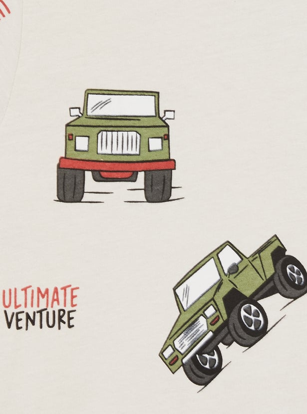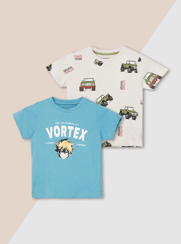 Add a playful touch to your wardrobe with this pack of 2 printed t-shirts, featuring fun designs, a crew neck, and half sleeves for all-day comfort.