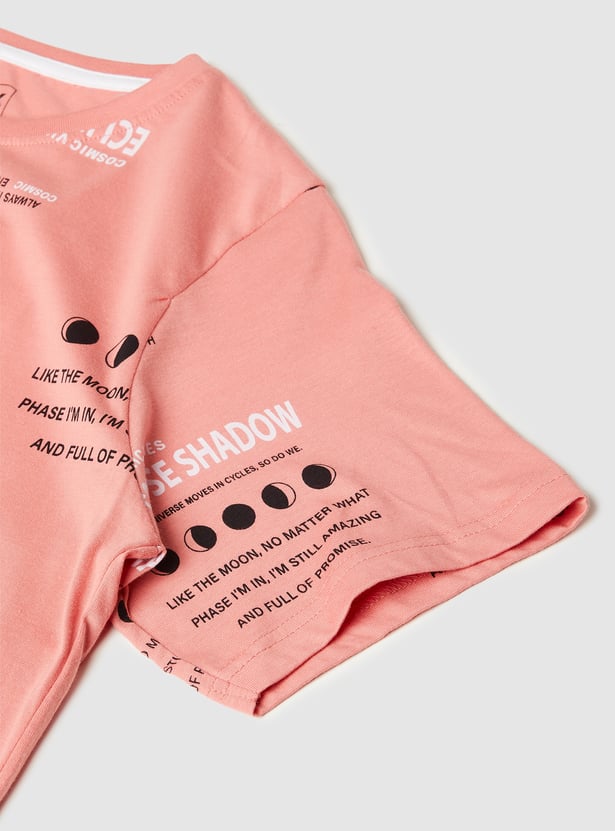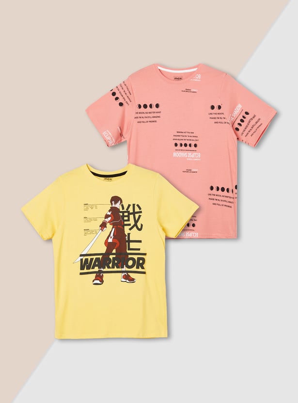 Refresh your casual wardrobe with this pack of two printed T-shirts featuring a crew neck and half sleeves. Designed for comfort and everyday style, these tees bring a playful touch to your daily looks.