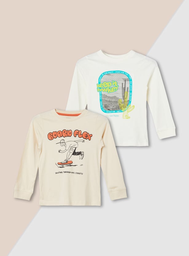 Keep it casual with this pack of two printed T-shirts featuring a crew neck and full sleeves. Perfect for everyday comfort and style.