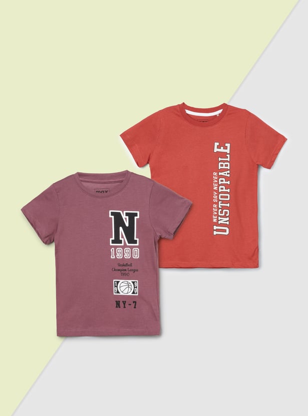 Brighten up your kids’ wardrobe with this pack of 2 printed T-shirts, designed with a classic crew neck and half sleeves for all-day comfort. Featuring playful prints, these versatile tees are ideal for school, playdates, and casual outings.