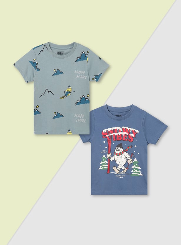 Brighten up your kids’ wardrobe with this pack of 2 printed T-shirts, designed with a classic crew neck and half sleeves for all-day comfort. Featuring playful prints, these versatile tees are ideal for school, playdates, and casual outings.
