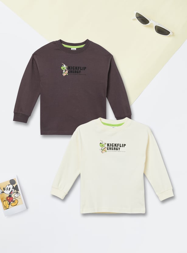 Upgrade your everyday basics with this pack of two printed T-shirts, designed with a classic crew neck and full sleeves. Crafted for a comfortable fit, these tees offer easy style and all-day wearability.