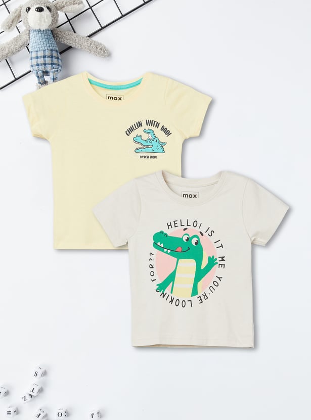 Everyday essentials made easy with these pack of 2 printed t-shirts. Each t-shirt is designed with a classic round neck and half sleeves, offering comfort and versatility for daily wear.