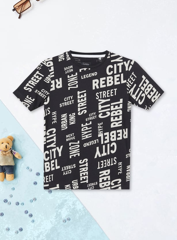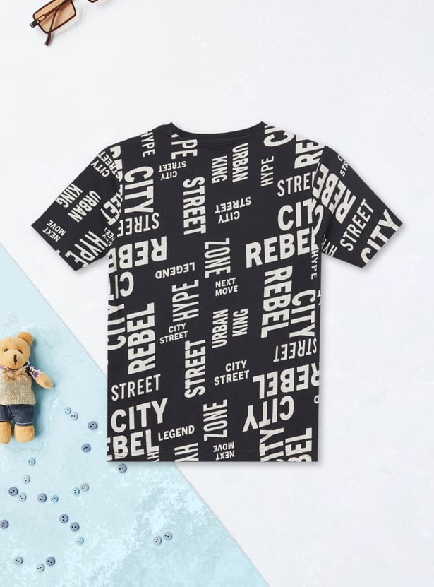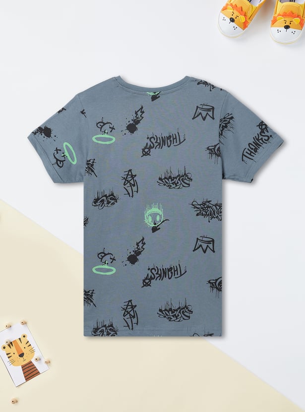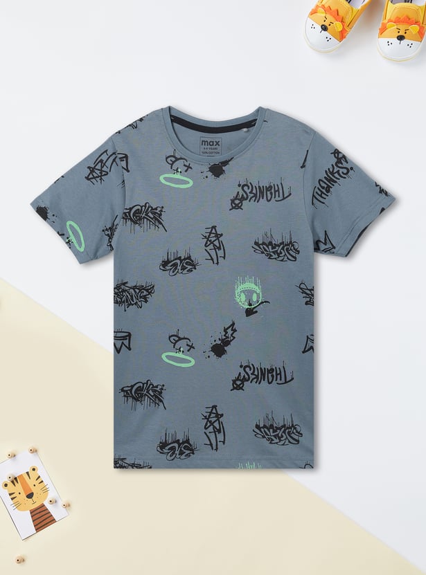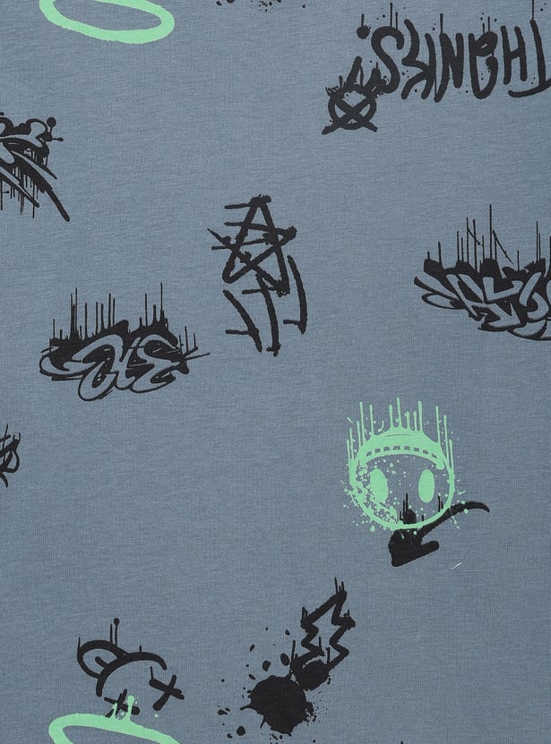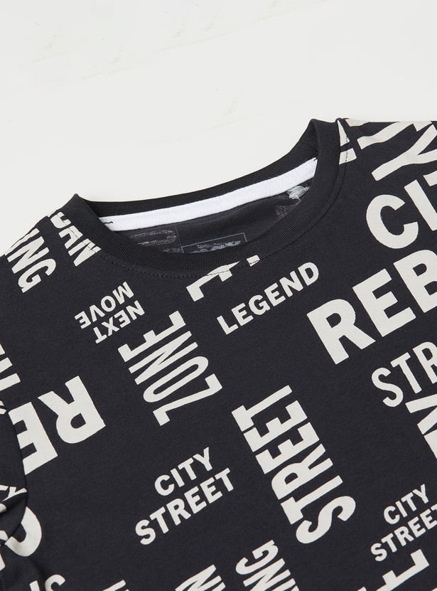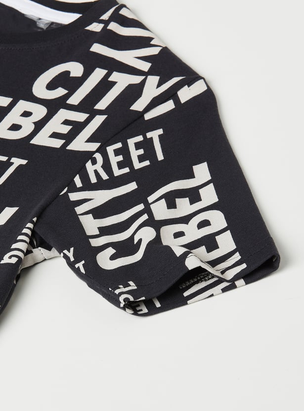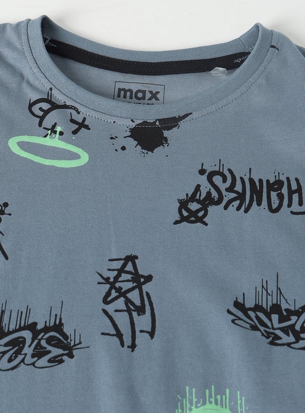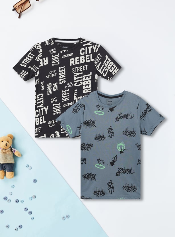 Elevate your boy's wardrobe with this pack of printed T-shirts. Featuring bold graffiti-inspired patterns on one and striking text graphics on the other, these T-shirts bring a trendy edge. Designed with a classic crew neck and half sleeves for everyday comfort.