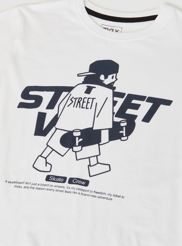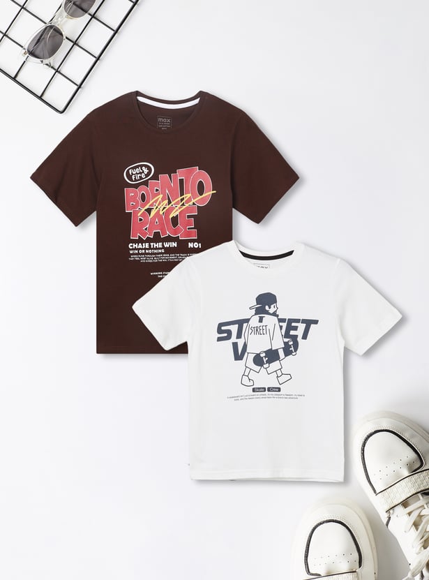 Add fun to your boy’s wardrobe with these stylish T-shirts. One features a graphic design, while the other showcases a bold car print. Both have a classic crew neck and half sleeves for a trendy and comfortable look.