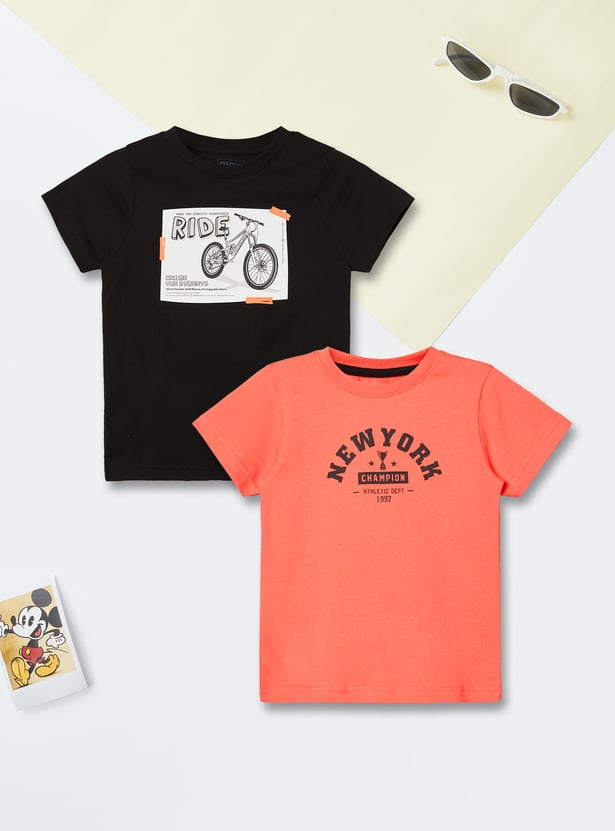 Refresh casual wardrobes with this pack of 2 printed T-shirts, featuring a crew neck and half sleeves. Soft, breathable fabric ensures all-day comfort.