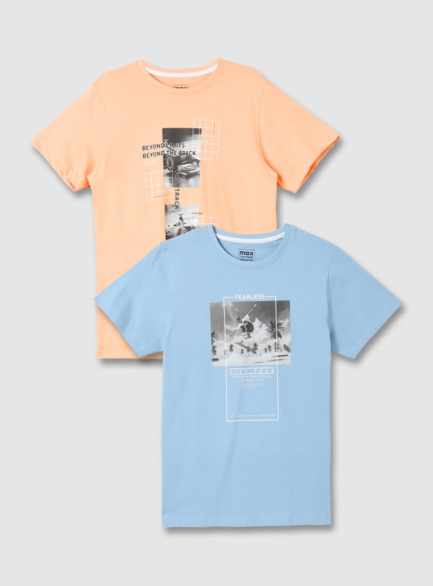 This pack of 2 printed T-shirts features classic crew necks and half sleeves, offering comfortable everyday wear with stylish designs. Perfect for mixing and matching with your casual wardrobe