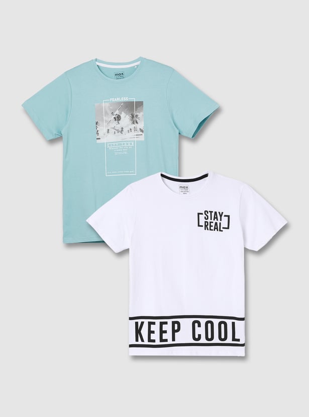 Refresh everyday looks with this pack of 2 printed T-shirts, featuring a crew neck and half sleeves. Soft and breathable for all-day comfort.
