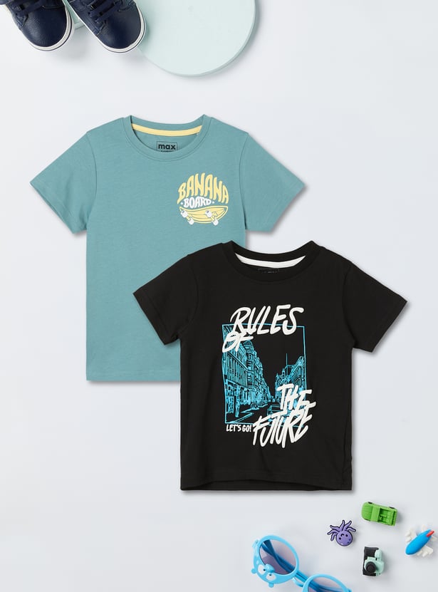 Refresh your casual wardrobe with this pack of 2 printed T-shirts, featuring a classic crew neck and half sleeves. Soft, breathable, and easy to style, these tees offer everyday comfort with a touch of personality.