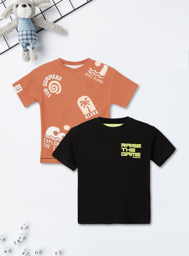 This pack of 2 printed T-shirts features classic crew necks and half sleeves, offering comfortable everyday wear with stylish designs. Perfect for mixing and matching with your casual wardrobe.