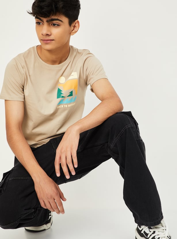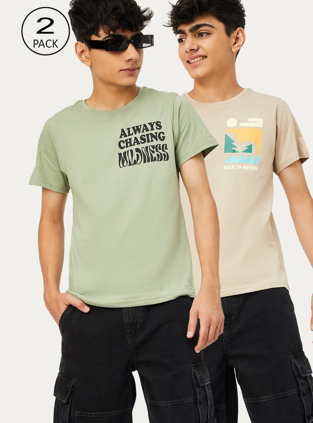 This pack of 2 printed T-shirts features classic crew necks and half sleeves, offering comfortable everyday wear with stylish designs. Perfect for mixing and matching with your casual wardrobe.