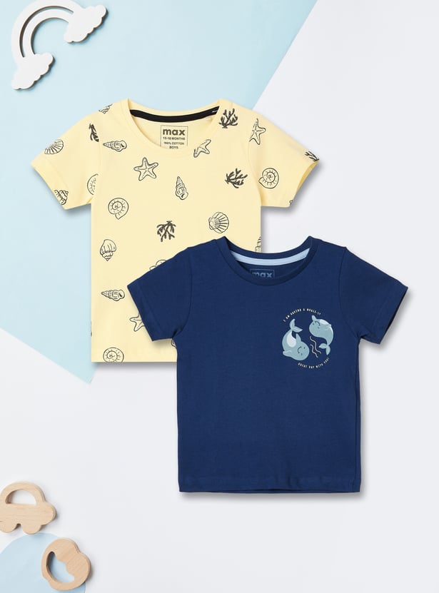 Refresh your everyday wardrobe with this printed t-shirt pack of two, offering casual comfort and style. Each tee features a classic crew neck and half sleeves, perfect for easy, laid-back looks.