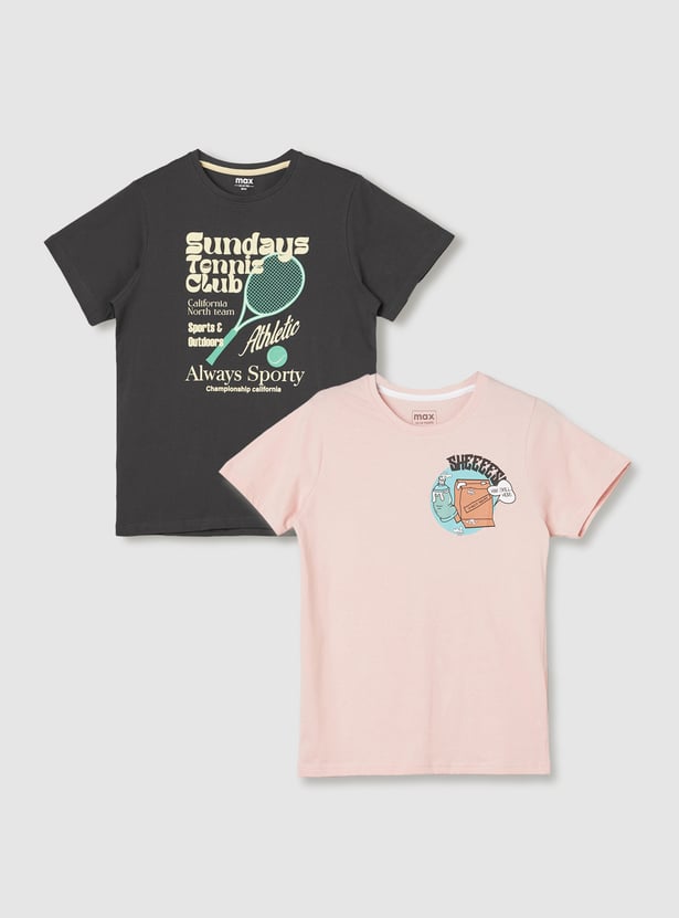 Refresh your basics with this pack of 2 printed T-shirts, featuring a classic crew neck and half sleeves for everyday comfort and style.