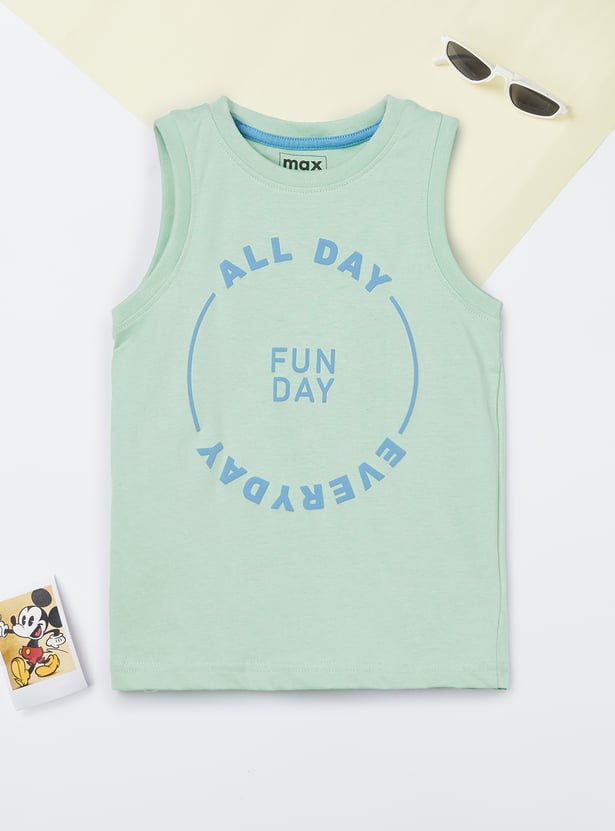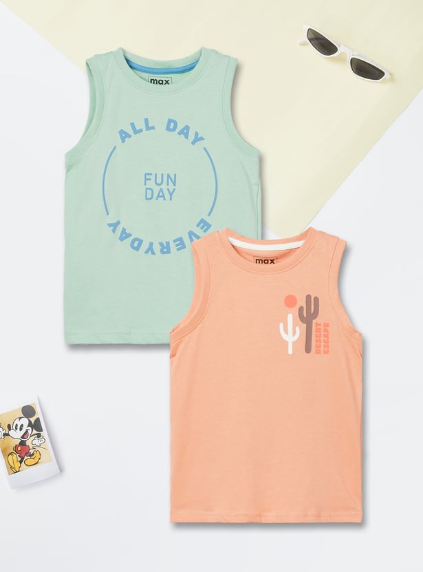 Double the style with this pack of 2 printed T-shirts, each featuring a classic crew neck and no sleeves. Soft and breathable, perfect for everyday wear.
