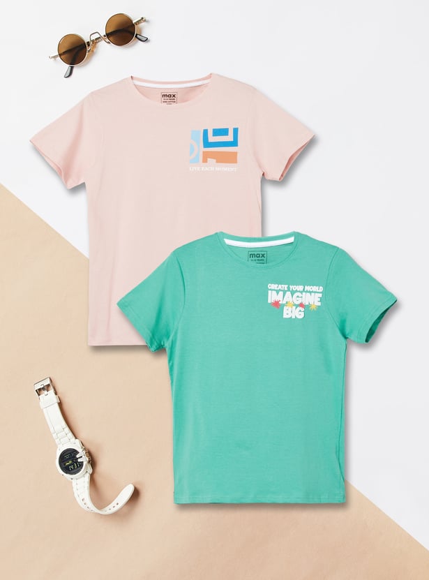 Update your essentials with this pack of 2 printed T-shirts, featuring a classic crew neck and half sleeves for versatile, everyday wear.