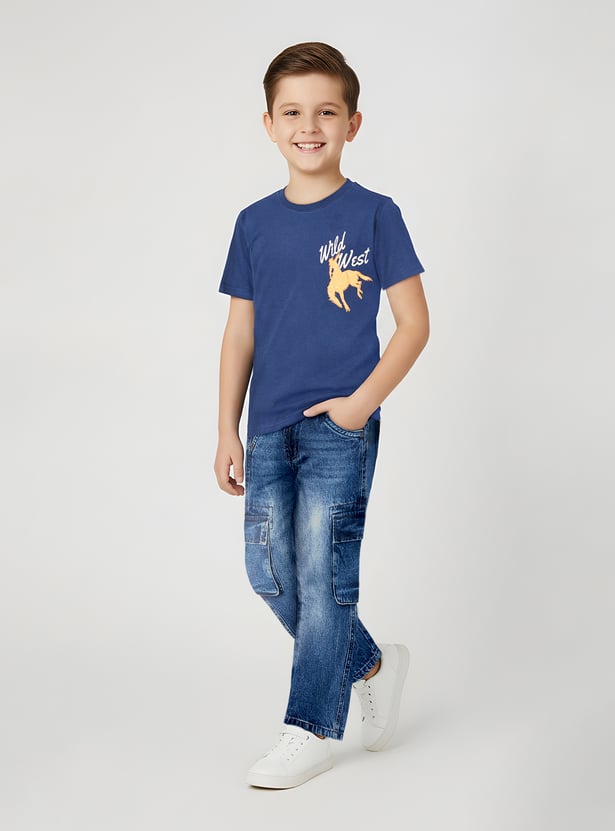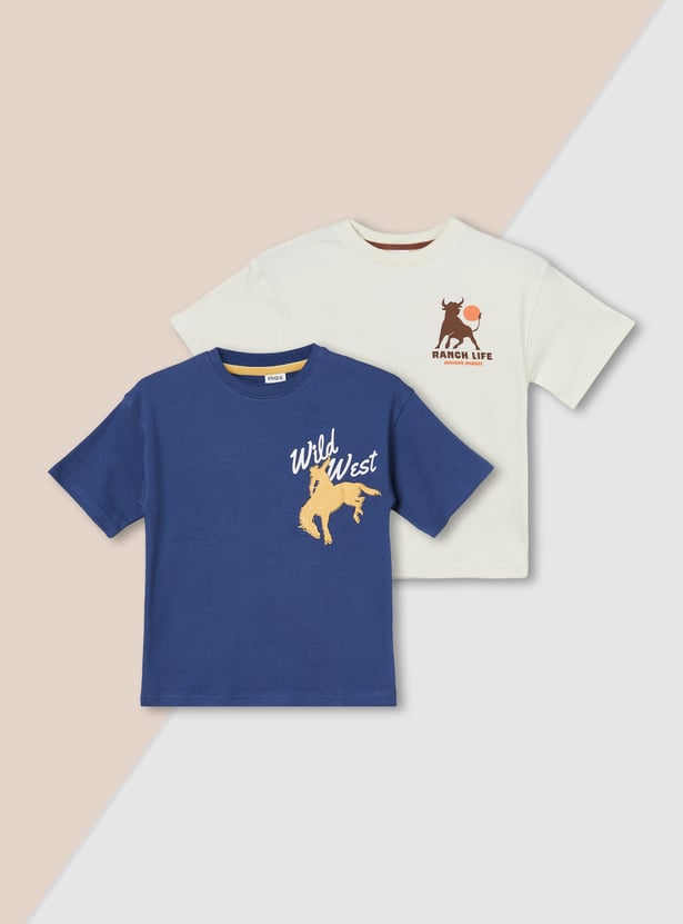 Add a playful touch to everyday wear with this pack of two printed T-shirts featuring a crew neck and half sleeves. Ideal for casual outings and all-day comfort.