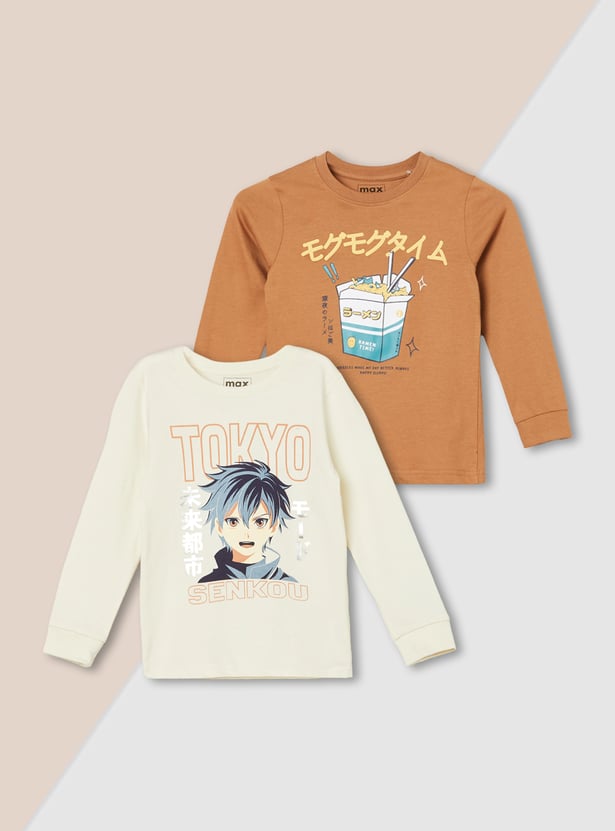This pack of 2 boys’ printed T-shirts brings fun and comfort together. Designed with a classic crew neck and full sleeves, each tee features playful prints that add personality to everyday wear.