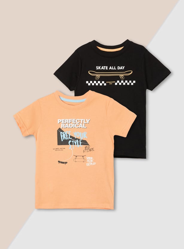 This pack of two printed T-shirts for boys features a classic crew neck and half sleeves for all-day comfort. Designed with cool, eye-catching prints, these tees add a fun twist to everyday wear.