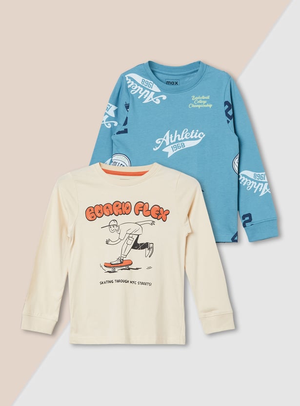 A fun pack of 2 printed T‑shirts featuring a crew neck and full sleeves. Designed for everyday comfort with playful prints, they’re perfect for casual wear and active days.