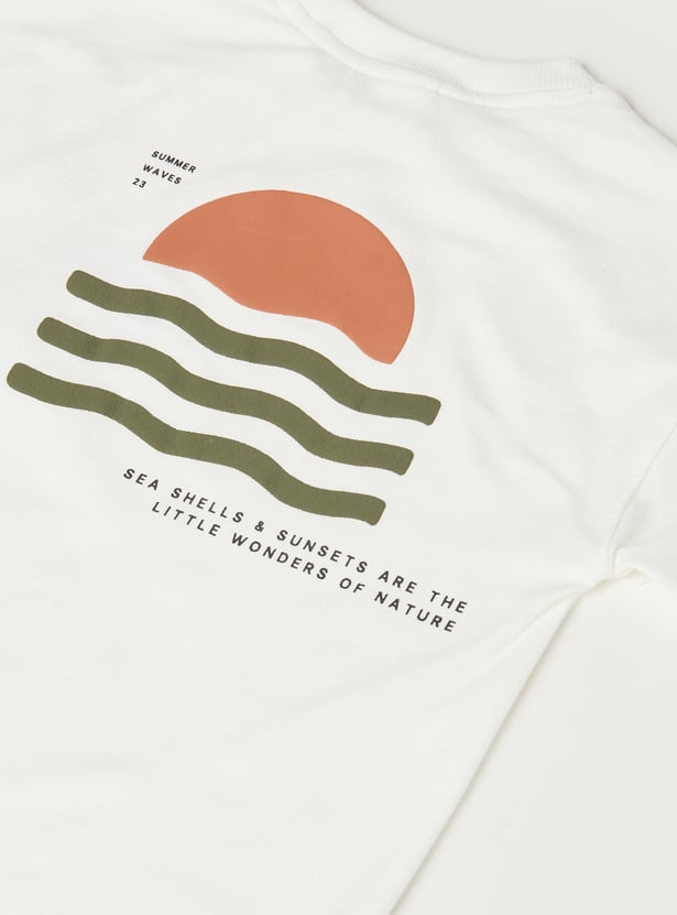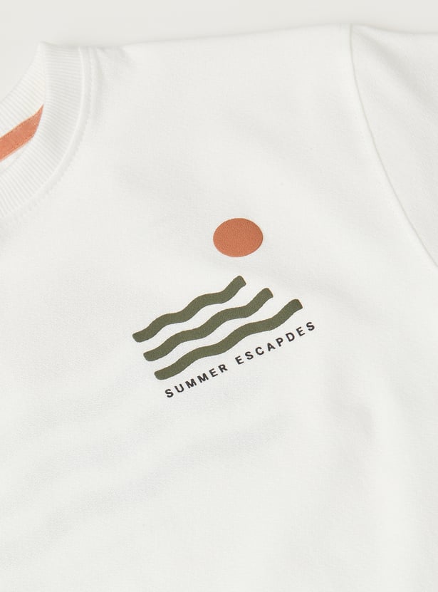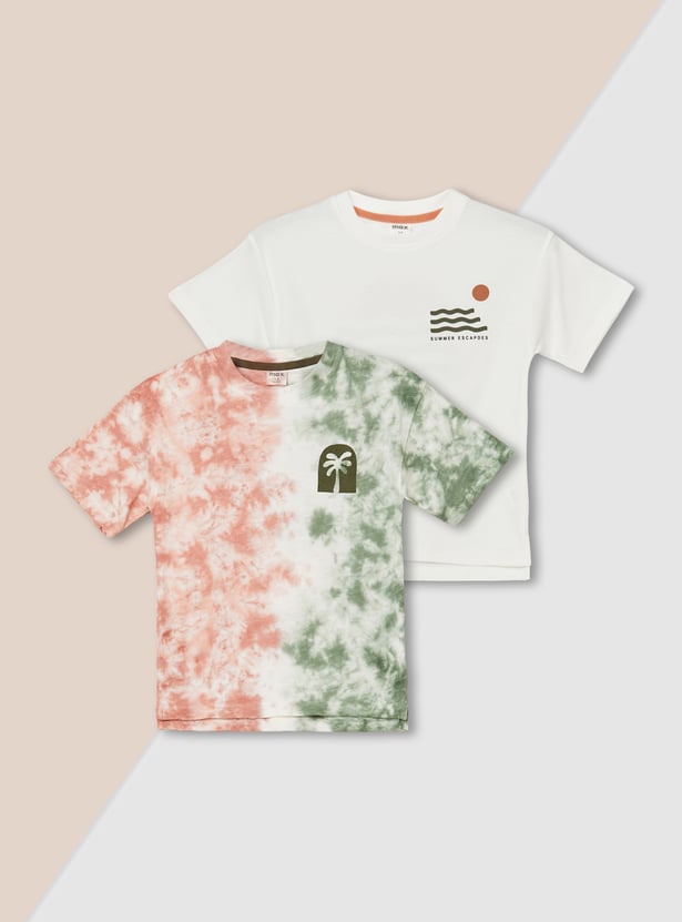 This pack of two printed T-shirts features classic crew necklines and half sleeves, offering a comfy, everyday fit. Each tee comes with vibrant prints that add a fun and playful touch to his casual wardrobe.
