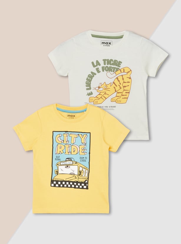 Refresh your casual collection with this printed t-shirt pack of 2. Featuring a classic crew neck and half sleeves, these tees are designed for everyday comfort and versatile styling.