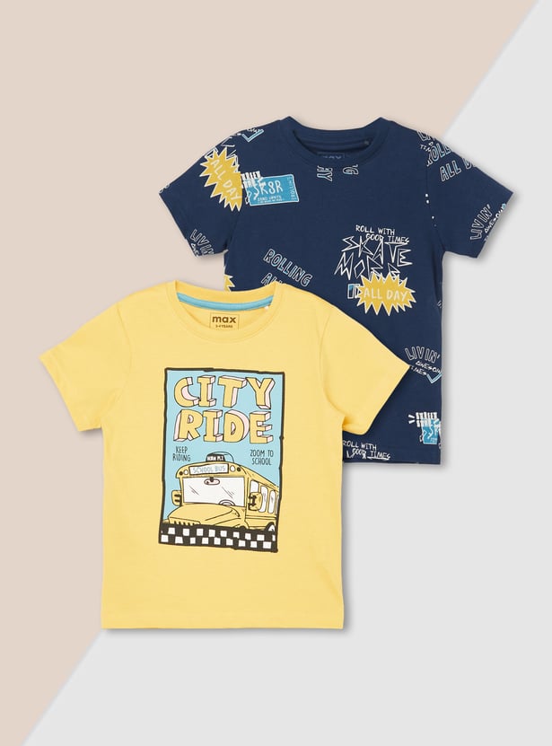 Refresh your casual collection with this printed t-shirt pack of 2. Featuring a classic crew neck and half sleeves, these tees are designed for everyday comfort and versatile styling.