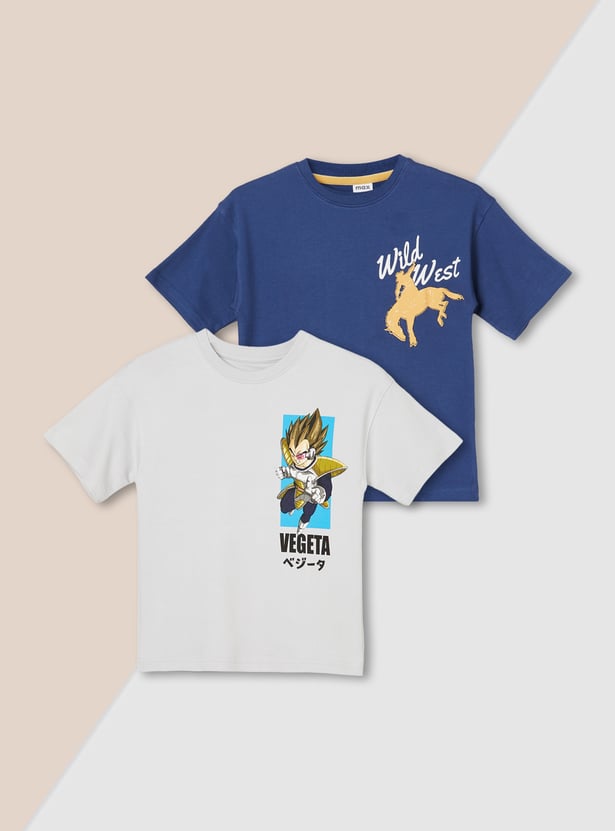 These pack of two printed T-shirts feature a classic crew neck and half sleeves. One has Dragonball Z print while the other has placement print.
