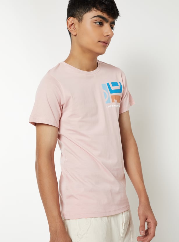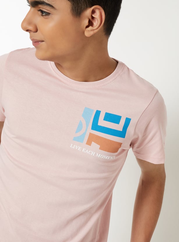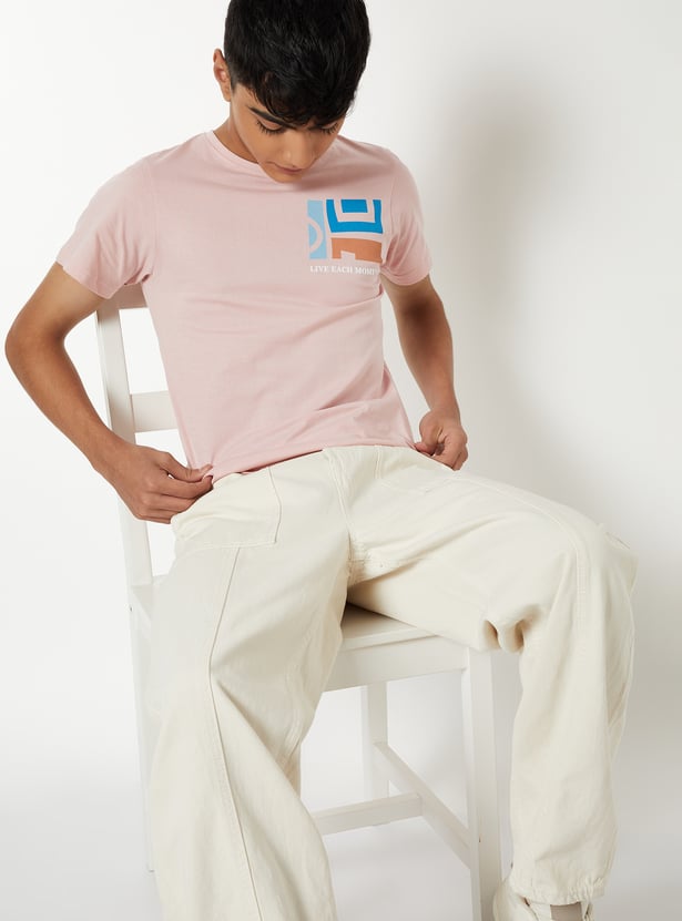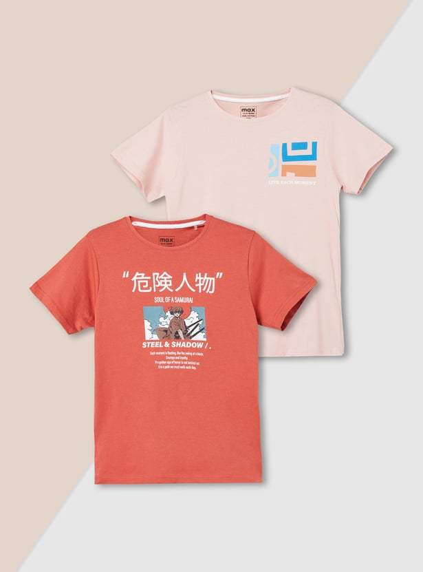Casual and trendy, this pack of two printed T-shirts features a classic crew neck and half sleeves. Designed for everyday comfort with stylish prints that add a playful edge.