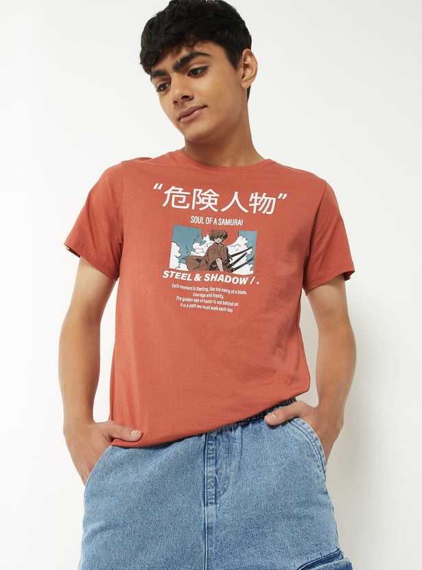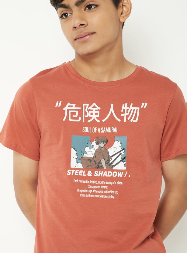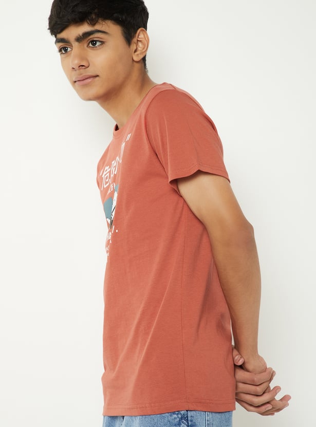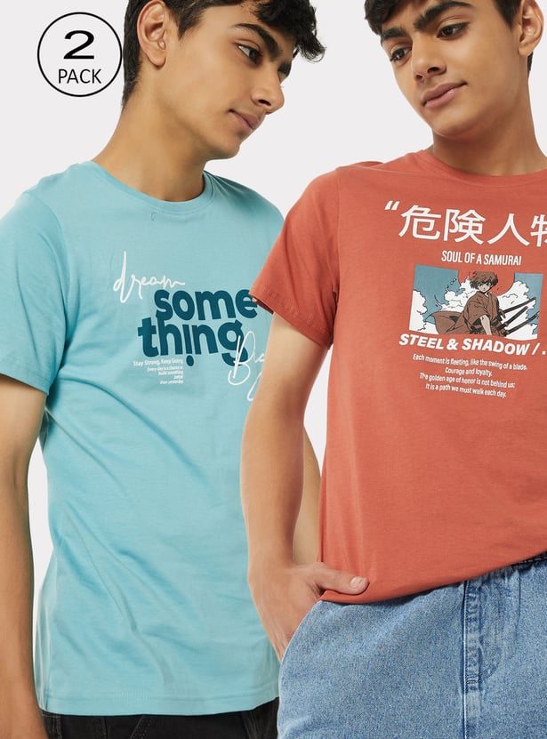 Casual and easygoing, this pack of 2 printed T-shirts is a wardrobe essential. Designed with a classic crew neck and half sleeves, they bring everyday comfort with a stylish touch.