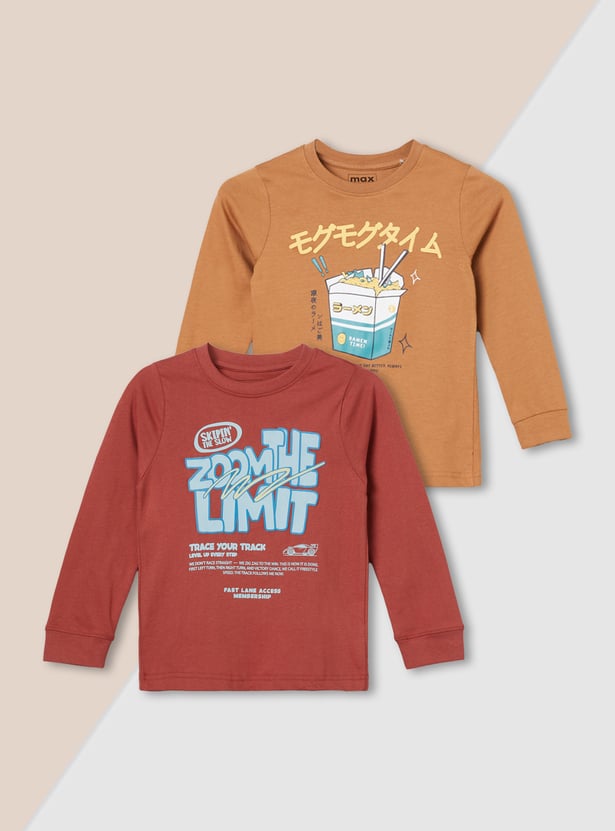 Refresh their everyday basics with this pack of two printed T-shirts featuring a classic crew neck and comfy full sleeves. Soft, easy, and perfect for daily wear.