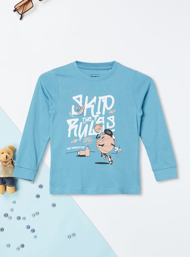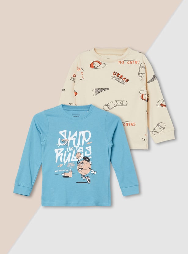Refresh their everyday basics with this pack of two printed T-shirts featuring a classic crew neck and comfy full sleeves. Soft, easy, and perfect for daily wear.