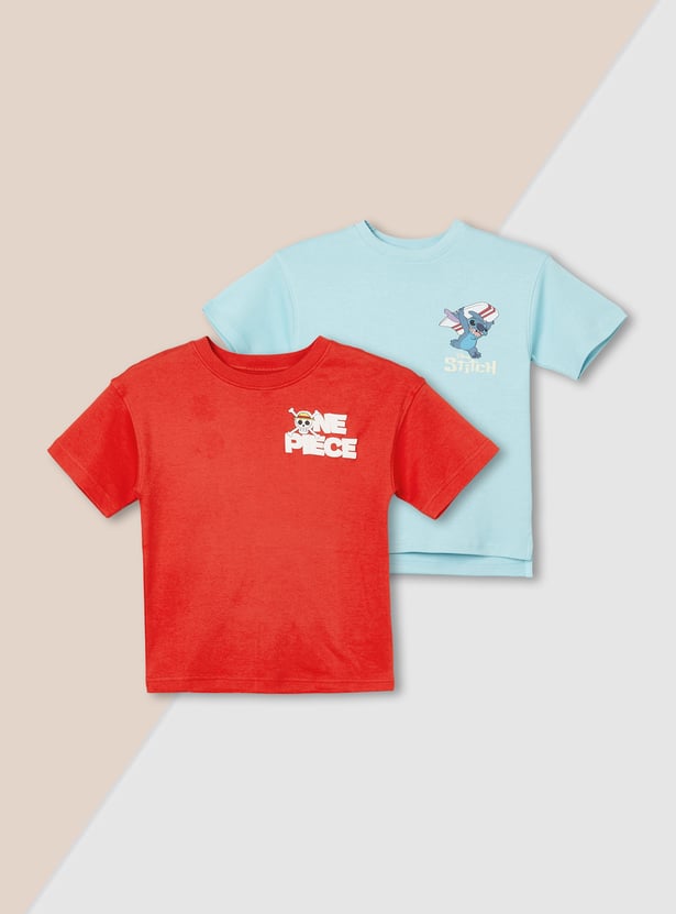 This pack of 2 boys printed T-shirts offers fun, casual style for everyday wear. Each T-shirt features a round neck and half sleeves, designed with playful prints that add a cool and trendy touch.