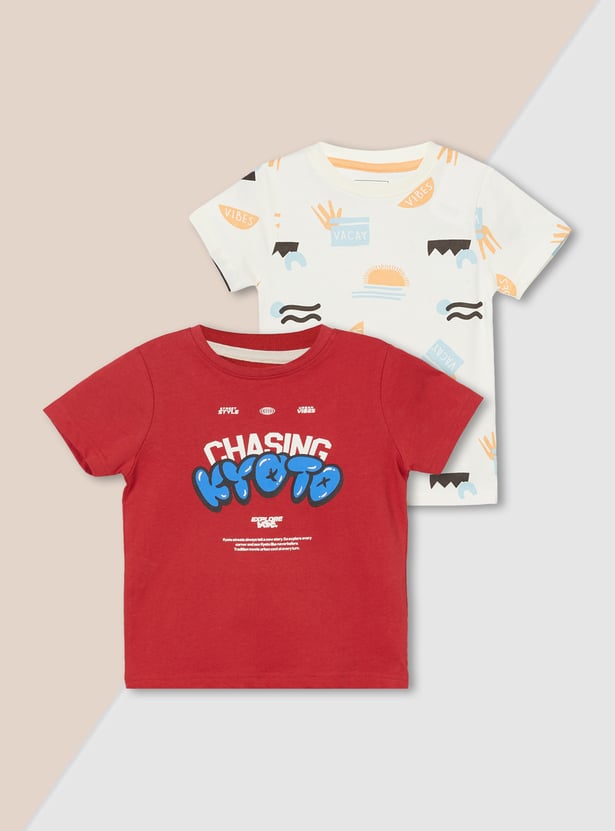 A fun pack of 2 printed T‑shirts featuring a crew neck and half sleeves. Designed for everyday comfort with playful prints, they’re perfect for casual wear and active days.