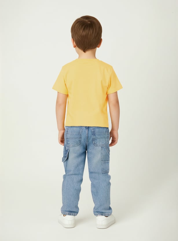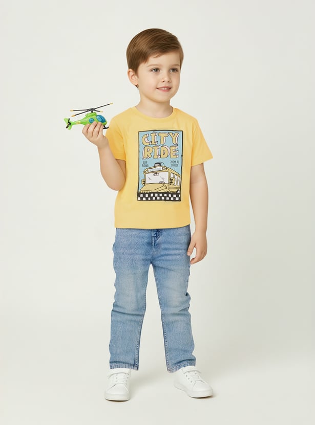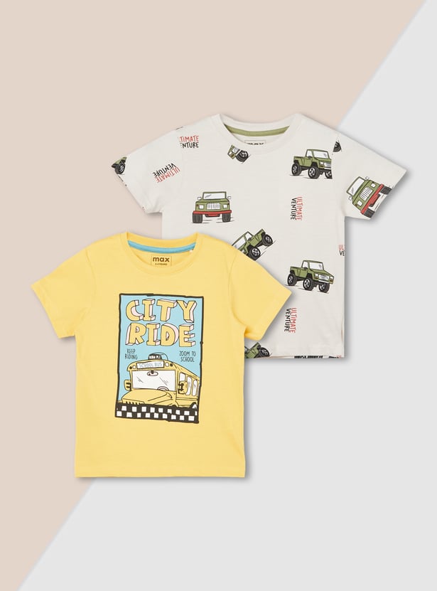 Casual and trendy, this pack of two printed T-shirts features a classic crew neck and half sleeves. Designed for everyday comfort with stylish prints that add a playful edge.