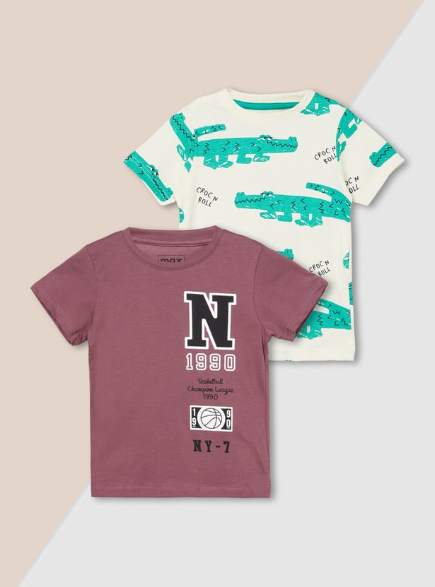 Upgrade your casual essentials with this printed pack of 2 t-shirts. Designed with a crew neck and half sleeves, they combine everyday comfort with versatile styling.