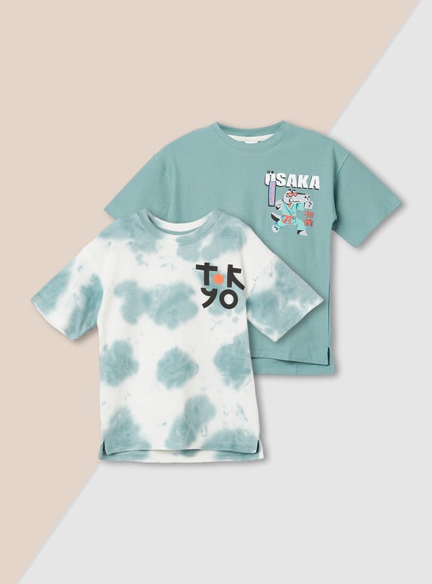 This pack of two printed T-shirts is designed for everyday comfort, featuring classic crew necklines and half sleeves for an easy, relaxed fit. Each piece comes with playful graphics that add a fun touch to casual dressing.